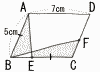 図のようにAB=5cm,AD=7cmである平行四辺形ABCDがある。点E,Fはそれぞれ辺BC,CD上の点であり,AB=CEである。影をつけた2つの部分の面積が等しいとき,線分CFの長さを求めなさい。 |